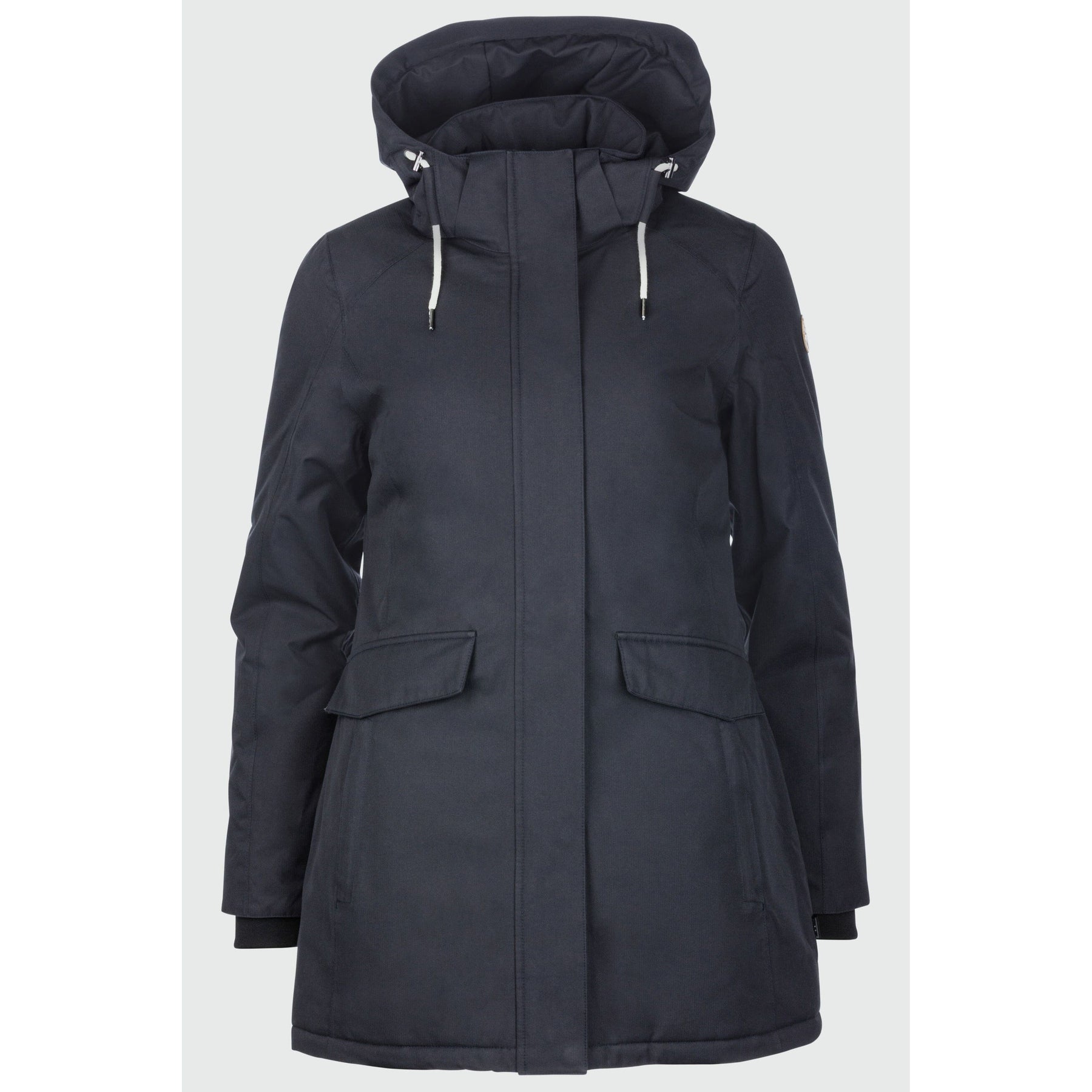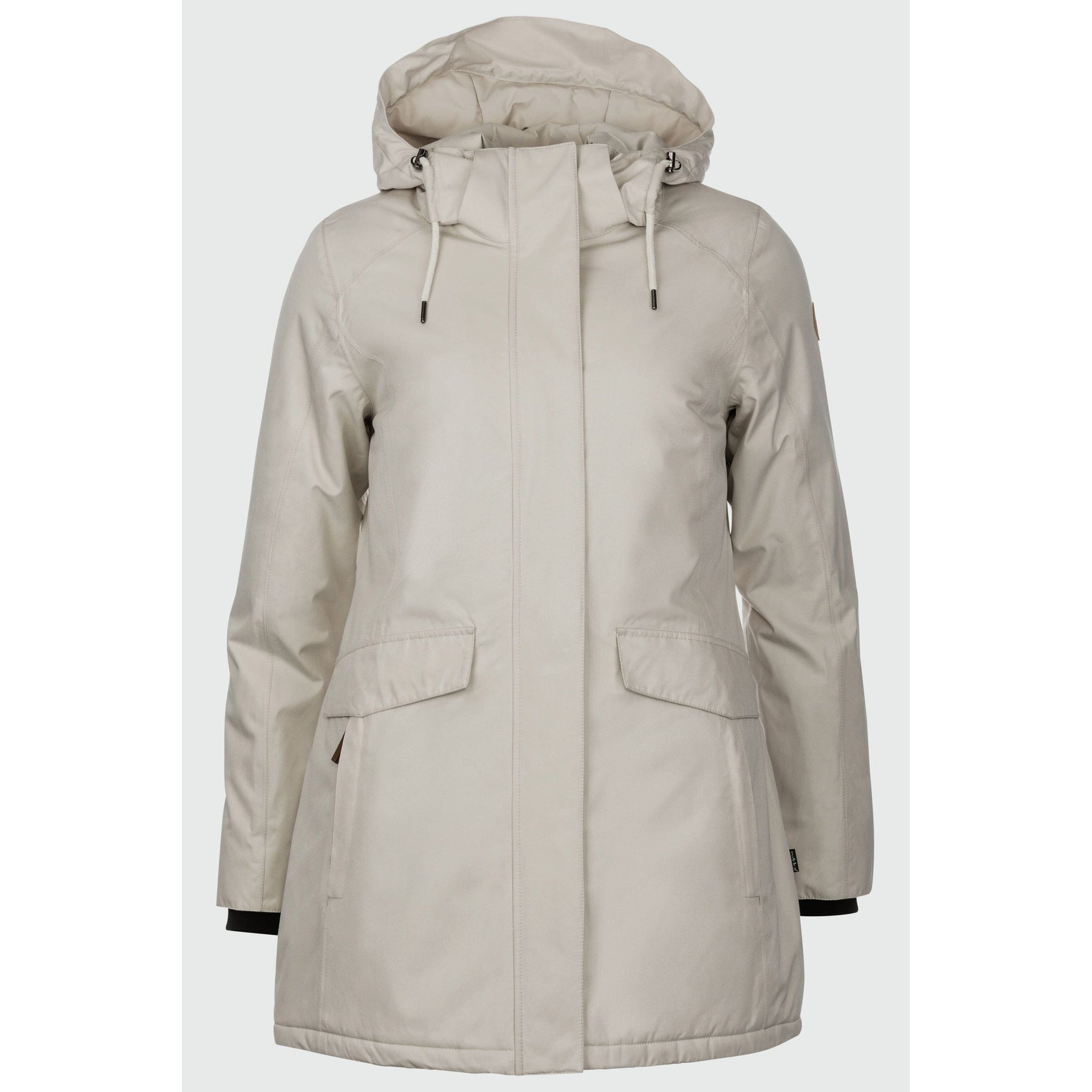 Neya. Die Winterjacke aus 100 % wetterfestem Obermaterial überzeugt mit abnehmbarer Kapuze, praktischen Taschen und einer angenehmen Länge – ideal für kalte, nasse Tage.